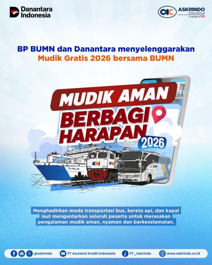 StockHaven – Dalam rangka menyambut Hari Raya Idul Fitri 1447 H, PT Asuransi Kredit Indonesia (Askrindo), yang merupakan anggota holding Indonesia Financial Group (IFG), turut berpartisipasi dalam Program Mudik Bersama BUMN dan Danantara 2026 dengan mengusung tema Mudik Aman, Berbagi Harapan.